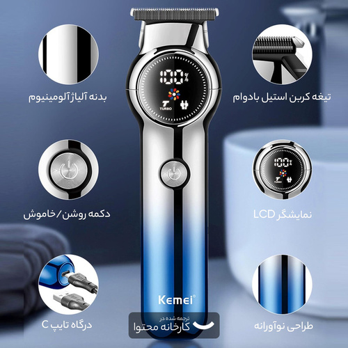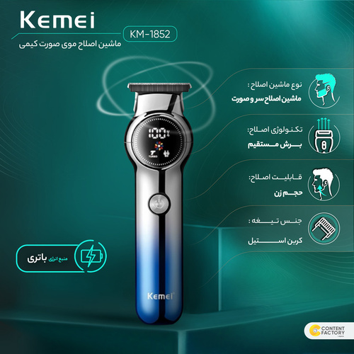 خرید اینترنتی ماشین اصلاح موی صورت کیمی مدل KM-1852 با رنگبندی نقره ای آبی به همراه مقایسه، بررسی مشخصات و لیست قیمت امروز در فروشگاه اینترنتی دیجیفای
